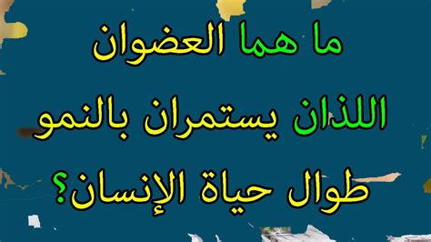 أي عضوين يستمران في النمو في حياة الإنسان؟ الحل هو النمو البشري، أي المراحل التي يمر بها الشخص حتى بلوغه