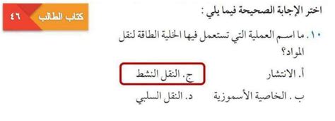 حل السؤال: ما اسم العملية التي تستخدم بها الخلية الطاقة لنقل المواد؟ يحتوي مقرر العلوم على العديد من المفاهيم التي