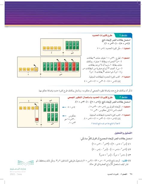 استخدم بطاقات الجبر لإيجاد مجموع أو فرق لكل مما يلي: تعتبر الرياضيات من أهم العلوم التي تضم العديد من العلوم،