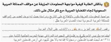 يناقش الطلاب كيفية مواجهة المعلومات الكاذبة حول مواقف المملكة العربية السعودية من القضايا العربية بمثال المملكة العربية السعودية مكانة رائدة