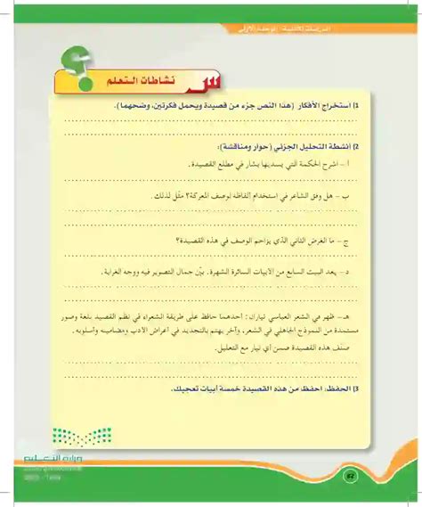 اشرح الحكمة التي قدمها بشار في بداية القصيدة. هناك العديد من النوايا التي يعبر فيها الشاعر عن مشاعره، من خلال