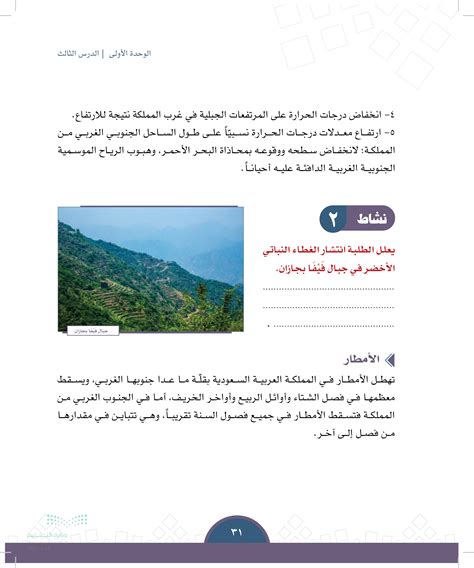 الطلاب يبرهنون على انتشار الغطاء النباتي الأخضر في جبال فيفا بجازان تتميز المملكة العربية السعودية بالعديد من التضاريس التي تنوع