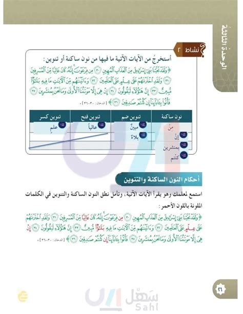 أعط ثلاثة أمثلة للراهبة الساكنة وثلاثة أمثلة أخرى من التنوين. من المهم للمؤمن أن ينظر إلى القرآن ويحاول بكل جهده