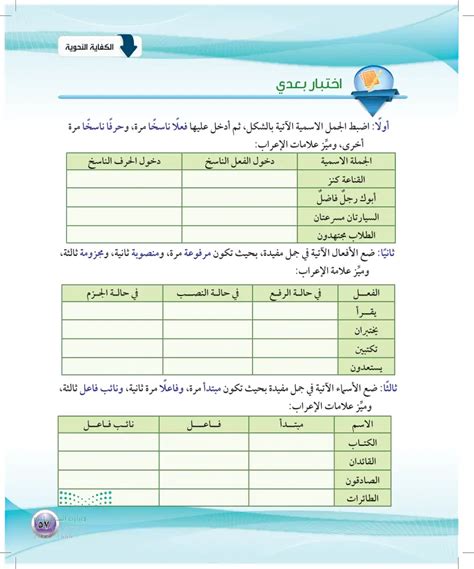 ضع الأسماء التالية في جمل مفيدة بحيث تكون مرة واحدة فاعلًا، ومرة ثانية، وفاعل ثالث، وتمييز علامات الإعراب، والعمل المستمر