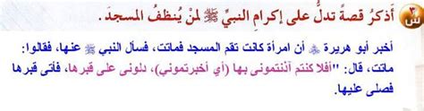 أذكر قصة تبين كيف يكرم الرسول صلى الله عليه وسلم من ينظف المسجد من تائه. أذكر قصة تبين شرف الرسول