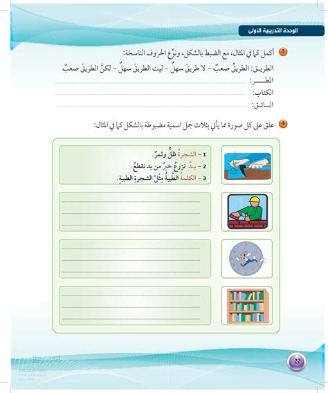 أكمل كما في المثال مع سبب في شكل ونوع الحروف المكتوبة. وتجدر الإشارة إلى أن الحروف المكتوبة تدخل في جمل