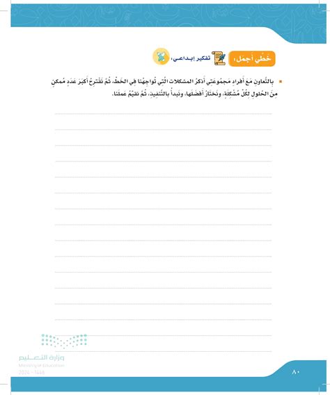 بالعمل مع أعضاء مجموعتي، أذكر المشاكل التي نواجهها في الخط ثم أقترح أكبر عدد ممكن من الحلول لهذه المشكلة وأختار